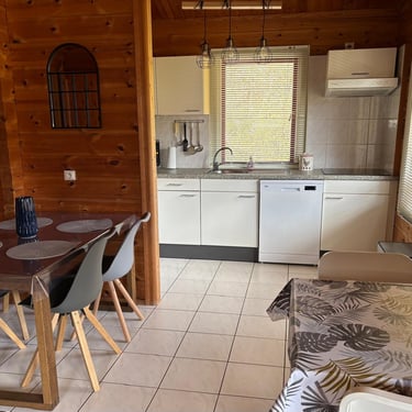 Le Kouki’s Lodge est entièrement équipé pour répondre à tous vos besoins. Il dispose d'une cuisine moderne avec lave-vaisselle, machine à café, réfrigérateur, micro-ondes et plaques de cuisson électriques. Le salon, doté de deux canapés et d'une télévision, invite à la détente. La salle de bains est équipée d'une baignoire, et les WC sont indépendants. À l'extérieur, profitez d'une grande terrasse avec table, chaises et barbecue électrique, parfaite pour des repas en plein air et des soirées conviviales.