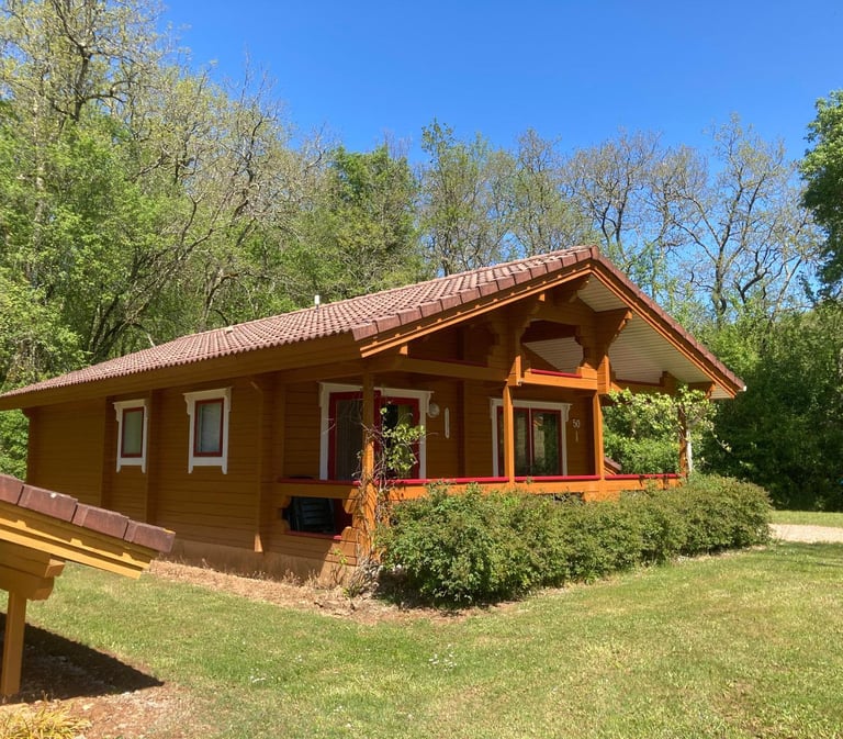 Découvrez nos chalets rénovés en 2019, offrant un confort moderne dans un cadre chaleureux et pittoresque. Situés dans le Village du Soleil, à proximité de Mauroux, nos chalets disposent de deux chambres avec lits doubles, pouvant accueillir jusqu'à 4 personnes.